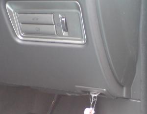 これ、キーについてる札です。このクルマ、なぜかこんな妙な部分にキーを刺すようになってます。このクルマ、(実際にはキーを刺す必要がない)スマートキーなのか聞くの忘れたんですが、それにしても妙な部分につけたもんです。