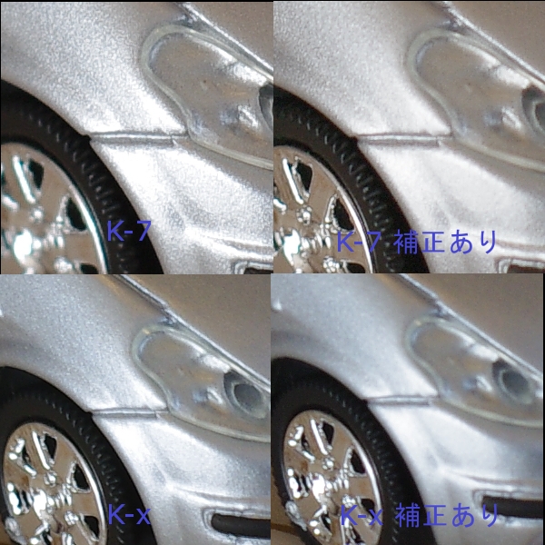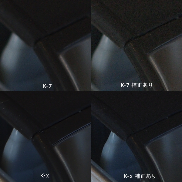 ピントがイマイチなのは置いといて・・・K-7, K-x共に補正が入るとぬめっと塗られた感じになります。確かに白飛びはなくなってますが、同時にディテールも失われてしまいました。この一例だけで判断はできませんが、正直なところハイライト補正もない方が個人的には好みかな・・・