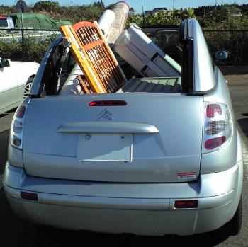 引っ越しに伴い出るのが数々の粗大ゴミ。現在住んでいる市では回収は有料ですが持ち込みは無料です。が、ここで困るのが運搬。なにしろ粗大ゴミなもんでまともな車では積載量が足りません。ここで活躍するのがプルリエル。