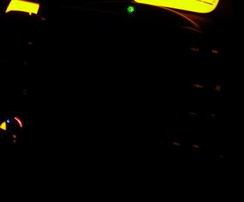 エアコンの温度調整ノブはカラーフィルムではなく明かりそのものが青と赤に光ってます。ちなみにステアリングの隙間に見える白い照明はレーダーの液晶画面です。