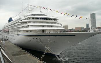びっくりしたのは隣にいた飛鳥II。お値段だけ見ても文句なく「豪華客船」ですが、今回初めて実物を見て思ったのは・・・ボロい。