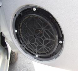 ここで、いきなり内張をはがすのは面倒なので、とりあえずスピーカーを外します。グリルは隙間にマイナスドライバーをつっこんで浮かします。