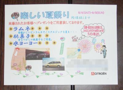 ちなみに今回は懐かしいラムネ(ちゃんと瓶入り)と駄菓子セット、以前C4ピカソのカタログをあげた会社の同僚が本当に見に来た、ということで(紹介料代わりに?)ちょっと高級なフルーツゼリーまでいただきました