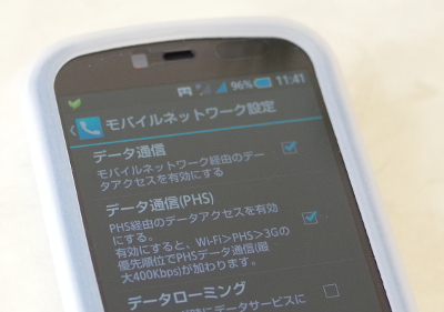 また、Androidの4636デバッグコードで3Gモジュールを完全にオフにできるのも気に入った理由です。これで普段はPHSだけという運用が可能になります。(ただし、新しいキャリアメールはソフトバンクのネットワークを使うので受信できません。PHSネットワークを使うwillcom.comメールは受信できます。要機種変前設定)