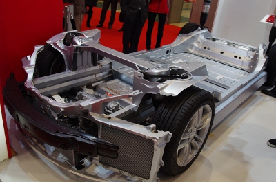 さすがにフルカーボンではなく金属製のサブフレームがつくみたいですが。こんなのがもう来年には発売されるというんだから凄いですね。量産車だけあってカーボンの形状も・・・