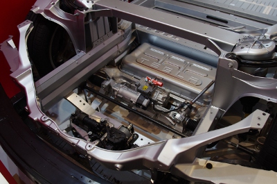 電動パワステだけならこんなにコンパクト。これなら確かにフロントトランクができます。