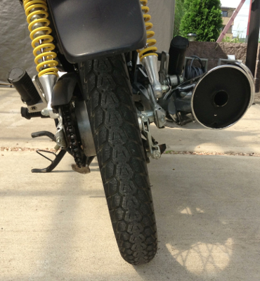 めちゃ細いリアタイヤ!ほぼフロントタイヤと同じ!