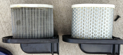 最近気持ちフケが悪くなってきて燃費が2km/Lほど悪化しているSRV250。そういえば今まで一度もエアクリーナー掃除したことなかったな、と反省しつつ覗いてみるととても掃除どころで済むような状態ではなかったので交換することにしました。