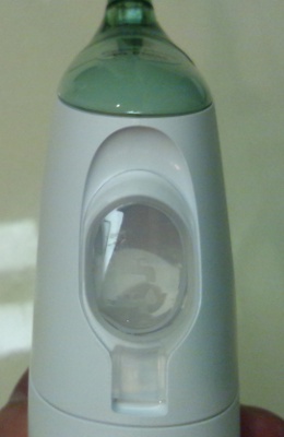 使い方は至って簡単で、水なりマウスウォッシュなり液体をタンクに入れてからノズルを歯間にあててボタンを押すだけ。パシュッっと結構な勢いで液体が出てきます。