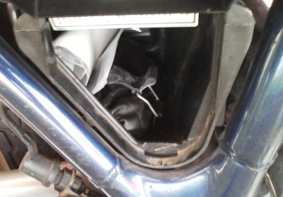 運転席側に出ました。右側のシャフトはステアリングシャフト。