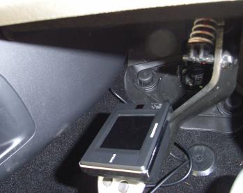 アンテナを取り付けたところで、次は本体です。本体は運転席側なので、センターコンソール下にアンテナ線を通してアンテナと繋げる必要があります。