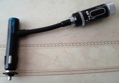 シガーソケットに差し込むタイプですが、なぜか電源とトランスミッターの2つのモジュールに分かれています。