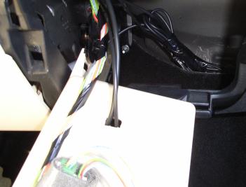 さて、アクセサリー電源が見つからず途方に暮れていたのですが、また挫折するのも悔しかったのでとりあえず取り付け候補のパネルを外してみることに。ついでだったのでパネル下側をカバー(こんなの国産でもやってない)している遮音材も外してみると、ハーネスがポロッと落ちて来た