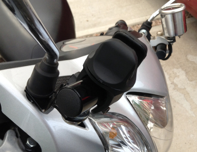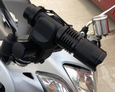 さて、取り付けたミラーホルダーにLEDライトを付けてみます。